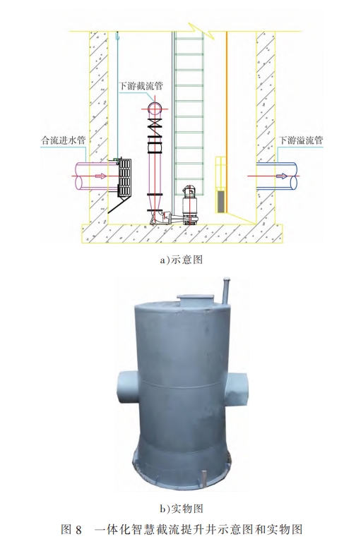 当下游截流管高程受限时,可以采用泵站截流将提篮格栅、提升潜污泵、活动堰门、智慧控制设备等集成为一体化智慧截流提升井(见图8)。施工时只需要完成基坑开挖、底板浇筑即可,施工量小、工期短。智能控制系统可以实现远程控制、故障报警和统一调度,无需人员值守,其运行维护费用较低。王雷!8指出,一体化智慧截流提升井采用计算流体动力学技术模拟设计的自清洁底部,能最大程度降低截流井底部淤积。