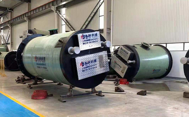 一体化污水提升泵站装置主要由集(污)水箱、提升泵、控制柜以及相应管道、阀门等组成。控制柜智能控制,全自动运行,无须人员值守,如果是双泵系统,两台提升泵互为备用、交替运行。当设备出现故障,报警系统将自动启动,报警指示灯闪烁,并发声报警,提醒值班人员。另外,控制柜上还有手动操作系统,可在现场手动应急启停水泵。