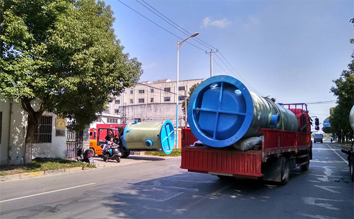 一体化预制泵站筒体是采用高强度纤维玻璃钢GRP材质,经优化设计,计算机控制缠绕工艺,确保厚度均匀并达到设计要求。经过抗静压、抗变形力学计算,具有轻便、坚固、防水,运输便捷,抗腐蚀能力强的优点,其强度相当于传统层压式玻璃钢的双倍,可完全抵抗撕裂、腐蚀及其它破坏力,故其坚固、持久、耐用,质量稳定优良并保证长期防水。